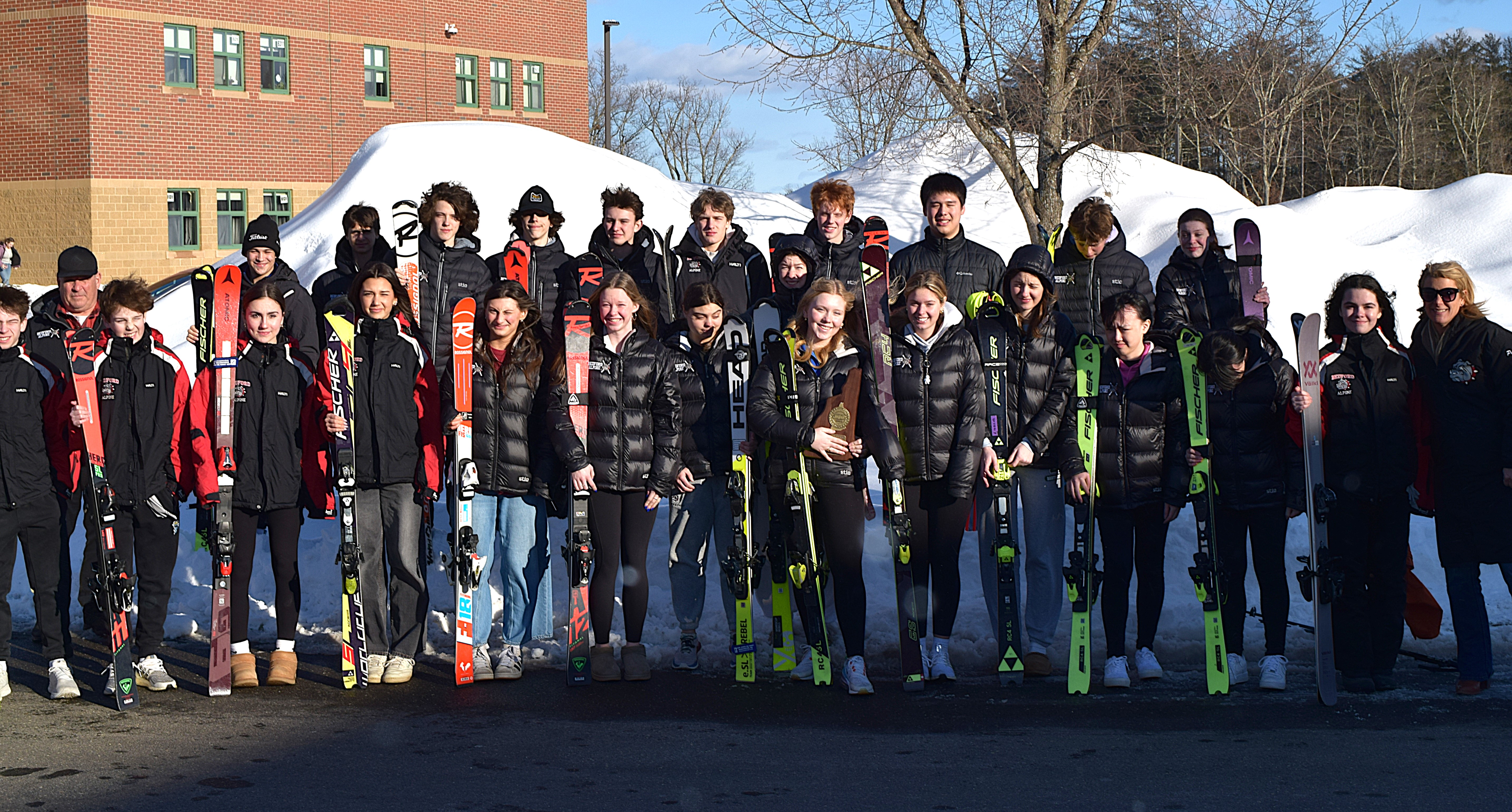 Since Bedford High School opened in 2007, the Alpine Ski Team has made the school proud, bringing home a state title nearly every year and qualifying for championships each season. The program has grown exponentially from its humble beginnings when the school's librarian served as the first coach. Now, under Coach Phil and Coach Liz, the team welcomes new members each year, building something far greater than a collection of race times.
