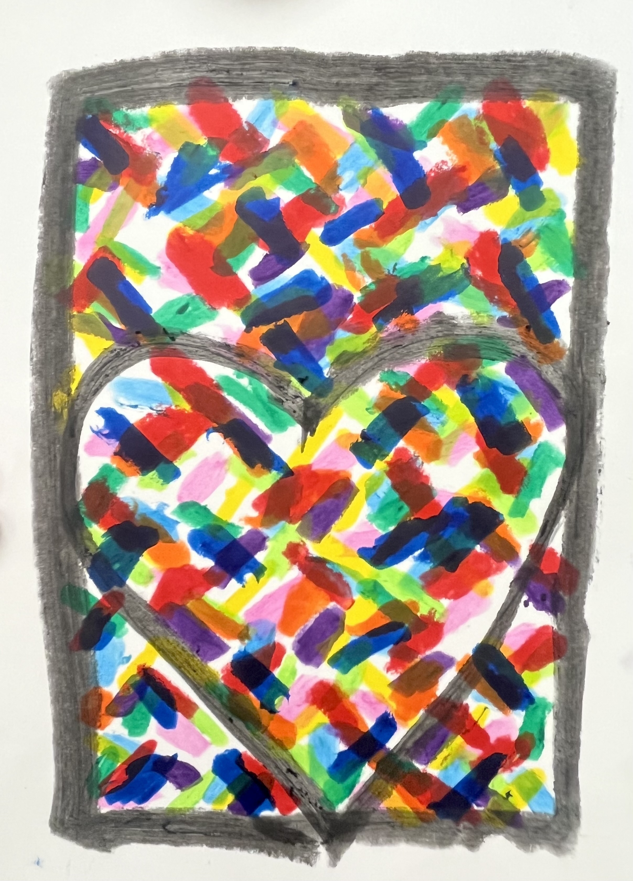 Step 1: Draw the Heart: Have a parent lightly draw a large heart shape on the paper—or let your child draw their own. Encourage imperfections. Jim Dine’s hearts are strong because they’re imperfect.